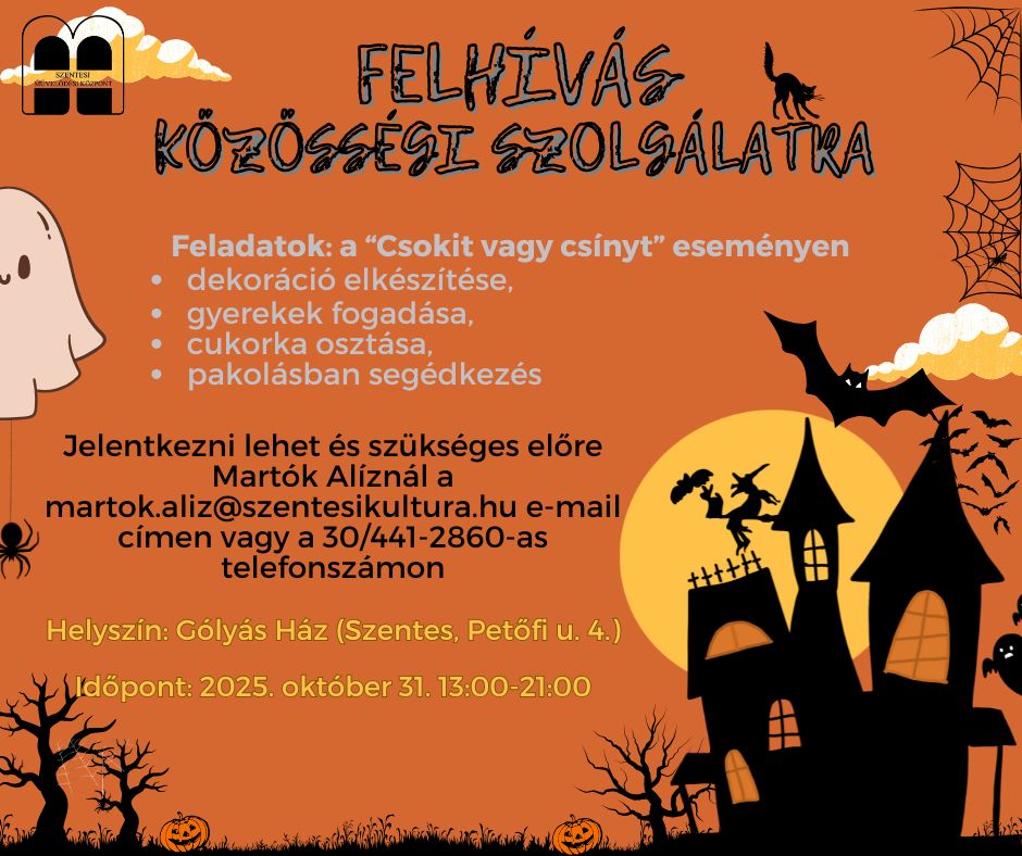 A Szentesi Művelődési Központ szolgáltatási helyen 2025. október 23 – 26 között zárva tartanak kivéve a meghirdetett programok idejét.